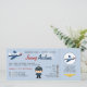 Convide amigos para a próxima festa de aniversário do seu filho com este lindo Convite de aniversário de Passagem de Avião. Possui um avião, piloto, asas de voo e pode ser personalizado com os detalhes da sua festa.