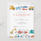 O nosso convite temático de Transporte colorido é perfeito para qualquer menino! O texto é totalmente personalizável. Você pode alterar as cores e os estilos das fontes.