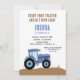 Convite de Festa de Aniversário de Trator em azul ótimo para um tema agrícola