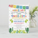 Traga a festa para o grande dia do seu pequeno com este divertido convite de aniversário Three-esta! Perfeito para uma festa de 3º aniversário cheia de tacos, música e cor. Este modelo editável apresenta um design inspirado no México, cores vibrantes e ilustrações festivas que definem o tom para uma celebração alegre.