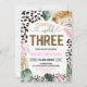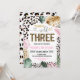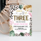 Celebre seu grande marco com este convite de aniversário com estampa de leopardo "Jovem Selvagem e Três". Com manchas de animais na moda e folhagem exuberante da selva, é a maneira perfeita de definir um tom elegante para a festa de 3º aniversário de uma menina. Este modelo editável é fácil de personalizar com os detalhes específicos do seu evento, garantindo que seus convites sejam tão únicos e ferozes quanto o seu pequeno.