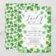 Convite de aniversário moderno e divertido do Trevo Irlandês. Vire nosso convite de celebração de aniversário sortudo no amor para encontrar um verso de trevo de quatro folhas verde coordenado.