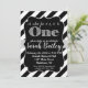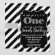 Convite de Aniversário de Um Ano Preto e Glitter Prata