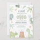 Convite de aniversário de um ano de dinossauro com dinossauros bebês aquarela!