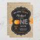 Convite de Aniversário de Um Ano do Abóbora com fundo laranja e burlap. Para personalização adicional, clique no botão "Personalize" e use nossa ferramenta de design para modificar este modelo.