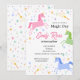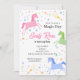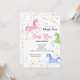 Convite de Aniversário de Unicórnio multicolorido rosa azul verde amarelo