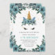 Convite de aniversário de unicórnio floral azul má