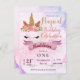 Convite de Aniversário de Unicórnio Floral Pastel em Cartão Postal. Envie estes Convites de Aniversário Temáticos de Unicórnio Mágico para seus amigos e familiares. O design tem uma ilustração de unicórnio floral pastel rosa e roxo com celebração de aniversário mágica escrita em brilho dourado com detalhes da festa escritos em fonte bonita. O cartão de convite de aniversário de unicórnio fofo pode ser totalmente personalizado alterando o nome da aniversariante e o ano marcante e outros detalhes. Para qualquer personalização adicional, sinta-se à vontade para entrar em contato comigo em @mypaperlove2021@gmail.com