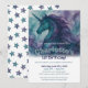Celebre o grande dia de um pequeno com este convite de aniversário de unicórnio sonhador, apresentando um rico design de tinta alcoólica em tons de azul-teal e roxo. Totalmente personalizável com o nome da criança, idade, detalhes da festa e mensagem.