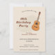 Um convite a uma festa de aniversário, com uma ilustração de um violão acústico sobre um fundo bege manchado. Ideal para uma festa de aniversário de música, mas também para um recital de violão clássico ou um concerto!