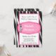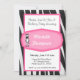 Crianças Cutas Zebra convidam com um fundo de zebra preto-e-branco com uma placa de nome rosa. Excelente para festas de aniversário temáticas Zebra. Personalize com os detalhes do seu partido.