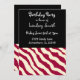 Um fundo preto acentuado por uma borda de impressão zebra vermelha e creme. Personalize com todas as informações de aniversário conforme desejado.