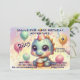 Convite de aniversário Dino Delight - Faça o seu filho rugir de aniversário com entusiasmo com o nosso Convite de Aniversário Dino Delight! Este belo convite mostra um bebê dinossauro fofo adormecido com um pequeno chapéu de festa, segurando alegremente um cupcake em meio a um fundo festivo de balões e confete. O design macio e caprichoso captura a alegria e a maravilha das celebrações da infância. Totalmente personalizável, você pode personalizar o texto para incluir todos os detalhes do seu partido. Ideal para festas com temas de dinossauros, este convite irá certamente excitar os vossos hóspedes e estabelecer a palco para um evento memorável.