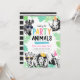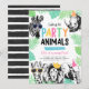 Um convite divertido e moderno! Recursos cores brilhantes, animais da selva ou zoológico, usando chapéus de festa e óculos de sol. Personalize o texto editável e use o convite para o seu evento cheio de animais!