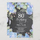 Convite de Aniversário do 80 Floral Azul Botânico