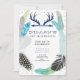 Boho Tribal Birthday convida adornado com cinzas azuis, penas neutras, flechas, veados. Tenham uma festa de aniversário com este convite tribal boêmico