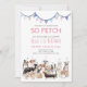 É o aniversário do seu cachorrinho, e vai ser muito divertido! Convide seus convidados especiais com este adorável convite de ilustração aquarela apresentando um grupo de cães de várias raças, todos arrumados com suas roupas de festa. Um design fácil de personalizar, usando nosso modelo pré-projetado, em tipografia escrita à mão. O verso do cartão apresenta um desenho preto e branco fofo desenhado à mão. Copyright Elegant Invites, todos os direitos reservados.