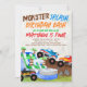 Convide seus amigos para entrar em contato e se desprender para a Festa de aniversário do Monster Truck com esses convites de festas de aniversários super legal que trazem caminhões monstros dirigindo por uma margem de água de verão.