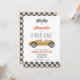 Convite para primeiro aniversario de Carro Rápido de Uma Corrida com carro de corrida amarelo.