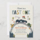 Seu filho de um ano é rápido! Convide amigos e familiares para uma festa de primeiro aniversario divertida com este carros vintage divertidos e animais ilustrando o convite temático.