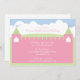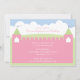 Este convite para festas de aniversário 5x7 tem um castelo princesa rosa giro com suas informações personalizáveis de festa no centro. Trabalho de arte criado por Babystar Design