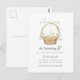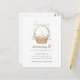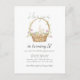 Convite de cartão postal de aniversário com um coelho em aquarela em uma cesta com tulipas e ovos.