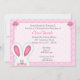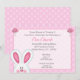 Convites de Aniversário para Garotas de Coelho Bonito. O coelho branco com orelhas cor-de-rosa é perfeito para qualquer idade e pode ser mudado para a idade apropriada. Fundo rosado e balões de coração cor-de-rosa tornam este design extra doce.