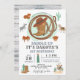 Um "sela-se" fofo e chorão cowboy ocidental selvagem primeiro convite de aniversário em terracotta browns e blues para um menino, com equipamento de cowboy ocidental e animais de rancho. Saddle, steer, cavalos, cacto e lasso. Tudo o que um cowboy precisa. É o primeiro rodeio dele! A parte de trás do convite tem um efeito de madeira de celeiro de penas leves. Você pode personalizar isso para qualquer criança.