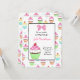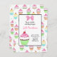 Este convite de festas divertido apresenta pequenos cupcakes coloridos por fora. Um cupcake grande fica no dentro com um gráfico de um arco rosa no topo do convite. Excelente para festa de aniversário!
