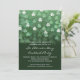Está chovendo trevos no Dia de São Patrício! Um convite de festa feito para criar o clima para diversão e celebrar a herança irlandesa (mesmo que você não seja irlandês!). Uma chuva de trevos cai sobre informações personalizadas da festa contra um verde floresta profundo. O verso pode ser personalizado com texto adicional ou o texto pode ser removido. Disponível com produtos correspondentes.