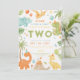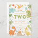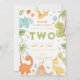 Celebre o seu grande dia com este convite de aniversário de dinossauros coloridos. O design lúdico apresenta dinossauros verdes, laranja e azuis em chapéus de festa com balões, folhas de palma e um vulcão para uma vibração pré-histórica divertida. Perfeito para aniversários infantis e festas com dino tema, este convite pode ser personalizado com o nome, a idade e os detalhes do evento do seu filho. Um design brilhante e alegre que dá o tom para um bom tempo!