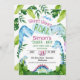 Convite de Aniversário do Dinossauro Três Rex Verde Azul