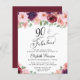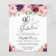 Convite de aniversário elegante e econômico que apresenta "90 & Fabuloso" em um script de na moda e buquês de cor d'água de florais vermelho, rosa e roxo bordados.