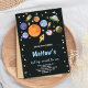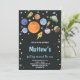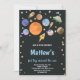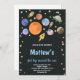 Faça o aniversário do seu filho fora deste mundo com este vibrante convite espacial! Com um foguete, planetas coloridos e um fundo de galáxia, este design editável é perfeito para jovens astronautas e fãs espaciais. Personalize seus detalhes de eventos facilmente usando as ferramentas de personalização do Zazzle. Excelente para rapazes ou raparigas que adoram estrelas, foguetes e aventuras espaciais!
