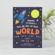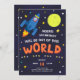 Celebre o seu aniversário em estilo com este convite de aniversário com tema espacial! Com um foguete rodeado por estrelas e lua, é fácil personalizar os detalhes com informações para a festa do seu próprio astronauta. Adicione a sua pequena foto ao dentro traseiro de uma nave espacial para um verdadeiro convite deste mundo!