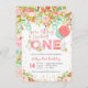 Um Coelhinho está fazendo um convite de aniversário. Convite Floral Bunny Pink.