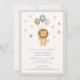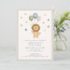Celebre seu dia especial com este charmoso leão e um convite de aniversário de confetti, projetado em tons de aquarela suaves perfeitos para um menino infantil. Apresentando um leão bonito segurando balões pastéis e confete espalhado, este convite é ideal para um ou dois temas de festa de aniversário selvagem. Personalizável e perfeitamente elegante para uma doce celebração inspirada em safari.