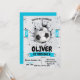 Convite de aniversário do menino do futebol azul