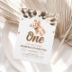 Celebre o grande dia do seu pequeno com este convite de aniversário do adorável ursinho azul. Com um doce urso pintado à mão segurando um monte de balões coloridos, este design traz um toque caprichoso e charmoso para o tema de qualquer festa de menino. Personalize facilmente o texto para incluir os detalhes específicos do seu evento e crie um convite profissional e de alta qualidade que os convidados vão adorar. Perfeito para primeiros aniversários, celebrações de crianças pequenas ou chás de bebê com tema de urso!