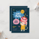 Celebre o dia especial do seu filho com este adorável convite de primeiro aniversario com um rato alegre segurando um bolo de morango. O design brilhante e brincalhão torna-o perfeito para um tema divertido e amigável de uma festa.