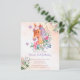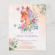 Cavalo de bebê rosa Pastel com convites de aniversário de orçamento-mãe. Belo cavalo de aquarela com arranjos florais e poucas borboletas. Adorável para garotas adoráveis a cavalo
