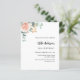 Um fundo branco chic. Decorados com ouro-rosa e folhas de eucalipto cor-de-rosa-esbranquiçada, flores de rosa e cor-de-rosa-esbranquiçada, galhos, verde-verde e um cinzeiro de ouro falso. Personalize e adicione seu nome e detalhes da festa. Traseira: cor de fundo rosa dourada. 1 folha = 1 convite impresso de borda a borda.