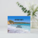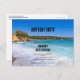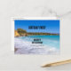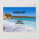Convite de aniversário com uma fotografia de uma praia na ilha grega Creta. Uma bela praia azul tropical com surf de espuma. Um maravilhoso destino de viagem tranquilo.