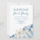 Convite de aniversário para a piscina azul moderna. Fácil de alterar o texto da página do produto. Tema de verão bonito com toalha azul de praia, chinelos e óculos escuros. Design simples para um aniversário de verão.