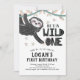 Ele é um convite de aniversário de preguiça selvagem com uma coordenação de volta.
