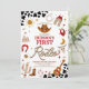 Prepare-se para uma celebração cheia de diversão com este convite de aniversário de primeiro rodeio temático western! Com chapéus de cowboy, botas, laços, cactos e acentos rústicos de impressão de vaca, este design captura perfeitamente o espírito do Velho Oeste. Ideal para o aniversário de um ano de uma criança, ele define o tom para uma animada festa de rodeio cheia de aventuras. Personalize facilmente com os detalhes do seu evento e crie um souvenir que os convidados vão amar.
