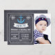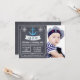 O convite de aniversário náutico do quadro de chalkboard deste rapaz apresenta uma âncora e um leme num fundo de chalkboard digitalizado. A design inclui também uma fronteira branca de dupla linha e divisores. A fotografia do seu filho aparece no lado direito do convite dentro de uma borda de quadro. Este convite é influenciado pelo popular estilo de quadro-negro e arte de estêncil. Ele está pronto para ser personalizado e é ideal para alguém que gosta de convites de quadro-negro e que está procurando por uma rua ou convite de festas de quadro-negro náutico para criança. Está pronto para você personalizar.