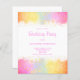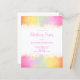Folha de papel de convite de aniversário do arco-íris, cor-de-rosa, confetti. Fácil de mudar o texto. Design de cor-de-água delicada. A folha de papel é mais fina que o papel de cartão.