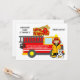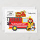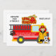 O bombeiro vai adorar este belo convite de aniversário de um caminhão de bombeiros que é fácil de personalizar e mostra um rapaz numa jaqueta de bombeiros e chapéu com um cão dalmata!