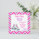 Um belo convite de aniversário multicolor perfeito para qualquer festa de patinação.  Ele apresenta um padrão de cóvron rosa e roxo na borda.  Um pequeno par de skates de desenho animado está no canto inferior esquerdo.  O texto é personalizável em rosa e roxo.